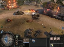 Шапкозакидательством многого не добьешься — приходится действовать хитростью. В Warhammer 40.000: Dawn of War мы стремились превратить каждый пункт выдачи ресурсов в миниатюрную крепость. Здесь все на порядок удобнее, ибо филиал казармы разрешено открыть в любом нейтральном домике (при условии, что он находится в вашей вотчине). Классическое разделение "танки/пехота" заслуживает аплодисментов — никаких перекосов в ту или иную сторону. Десяток головорезов, танцующих джигу вокруг стального монстра, может отправить его на свалку, но не рассчитывайте на то, что хищник не будет огрызаться. Между прочим, юниты почему-то игнорируют бронепробиваемость оружия, и штурмовики порой увлеченно долбят "Пантеру" из BAR, не отваживаясь метнуть гранату без нашей помощи. Инфантилизм логичен, ведь порции тринитротолуола нужно оплачивать из собственного кармана. Капитализм!