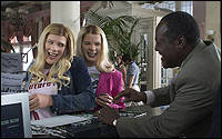 Сюжет в «Белых цыпочках» рабочий — исключительно в хорошем смысле слова. Да и так ли важна причина, по которой мужчина притворяется женщиной, если, конечно он — не проклятый извращенец? Поверите, что в ФБР взяли таких молодых и черных братьев Уэйнсов, и вся мотивационная часть фильма не причинит вам особых хлопот. К счастью, «Белые цыпочки» не дают поводов расстраиваться вообще. Являясь чистокровной ситуационной комедией, картина не стесняется своей принадлежности и не пытается показаться чем-то немеренно грандиозным. Подобное здравое к себе отношение, что ни говори, всегда импонирует. Богатый набор шуток не обманет ничьего ожидания: что бы ни нарисовало ваше больное воображение на тему «Приключения двух чернокожих, прикидывающихся белыми девушками» — все обязательно приключится. Нелегкая прокатит главных героев по всем аттракционам жизни обеспеченных блондинок: начиная с примерочных кабинок дорогостоящих магазинов и заканчивая модельным показом. По пути из точки А в пункт Б они встретятся со здоровенным негром-баскетболистом, который сам не свой до белых цыпочек, просветят новоприобретенную подружку о значении слова «подстилка», и выслушают песню Ванессы Карлтон «Тысяча миль» по крайней мере два раза. Не обошлось и без расовой специфики — Уэйнс-главный не упустил случая поиздеваться над неумением белых танцевать и остроумно шутить. На большее количество колкостей, хвала всевышнему, у режиссера не хватило наглости, так что многометровые черные залупы не торчат из каждого угла и никого не нервируют. За что мы товарище Кинену Айвори безгранично благодарны. Еще хочется выразить свою признательность за то, что веселый и задорный юмор фильма таки смог прошибить ту стену скепсиса, которая самопроизвольно возникла после уже предыдущей картины Кинена Айвори. Мы выяснили (и тверды в своем мнении), что Уэйнсы — не такие уж никудышные комики. А «Белые цыпочки» вполне оправдывают потраченное на них время. --------------------------------------------------------------------------------